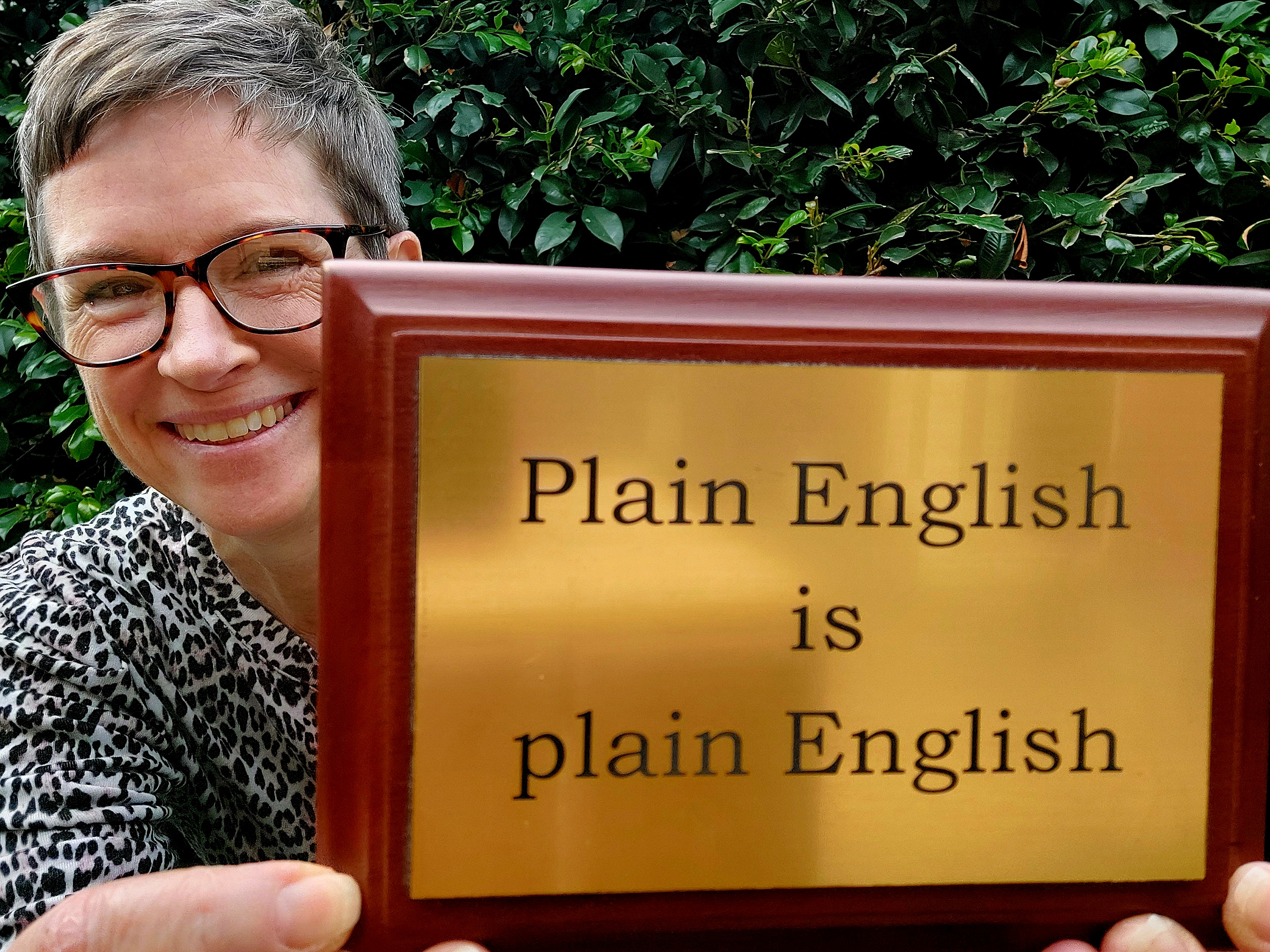 When I left that role, my team gave me a gift: a plaque engraved with those same words. Plain English is plain English. It’s moved with me from job to job, house to house. It’s still with me, years later.